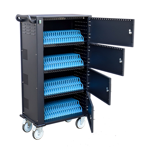 خزانة بشاحن قابل للقفل بتيار متردد ، محطة تخزين لعربات Chromebooks واللابتوب والأجهزة اللوحية