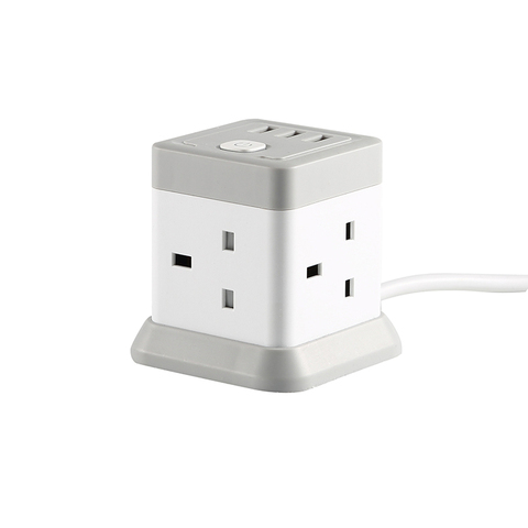 Güç küpü model kare İngiltere uzatma soketi fabrika kaynağı 4ways güç şeridi ile USB ve anahtarı