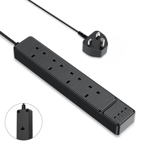 4-Gang İngiltere 13A anahtarlı elektrik dişi uçlu uzatma kablosu ile uzatma çıkışı