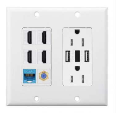 2 미국 갱 화이트 cat6 Rj45 동축 포트 페이스 플레이트 벽 콘센트 플레이트
