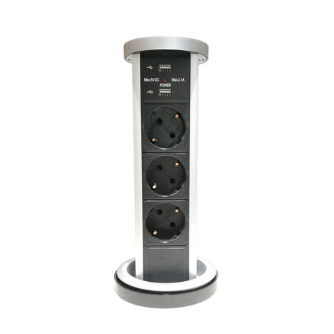 キッチンまたはオフィス用の2つのUSBを備えた電動ポップアップソケット3 Euソケット